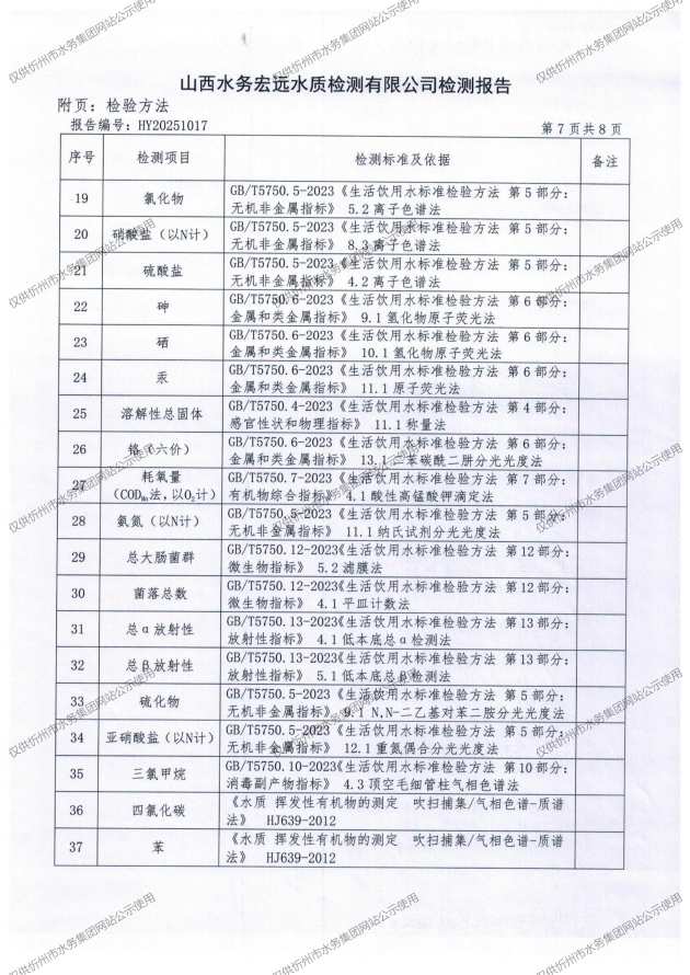 忻州城區(qū)公共供水水源水、出廠水、管網(wǎng)水、管網(wǎng)末梢水2025年9月份水質(zhì)信息公示