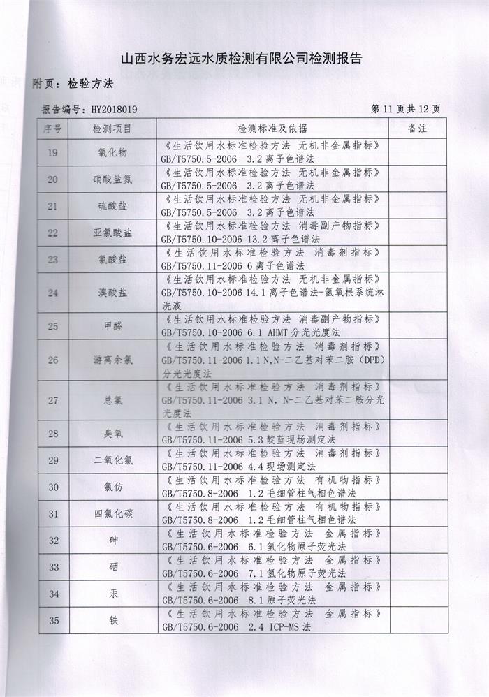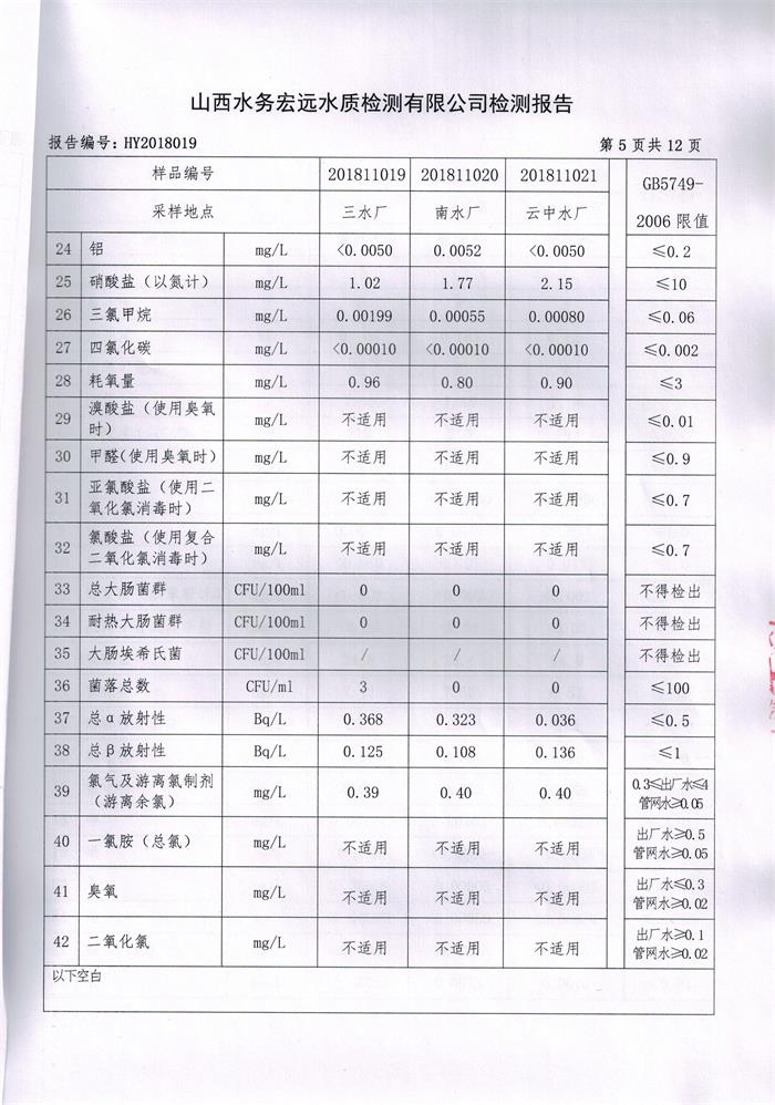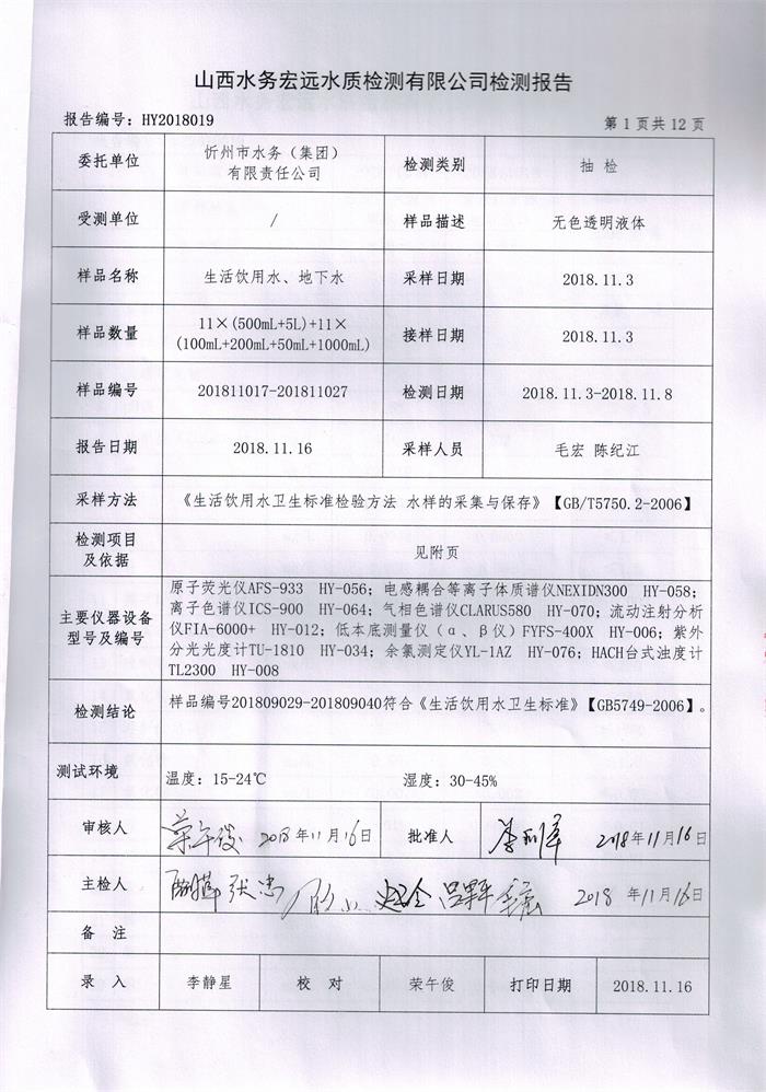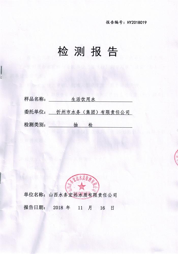 忻州城區(qū)公共供水水源水、出廠水、管網(wǎng)水、管網(wǎng)末梢水2018年11月份水質(zhì)信息公示