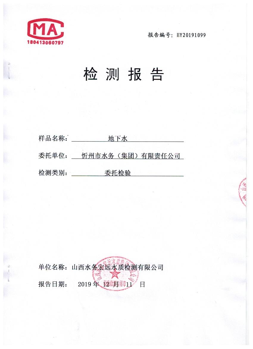 2019年忻州城區(qū)公共供水南水廠、三水廠水源水39項(xiàng)地下水水質(zhì)全分析