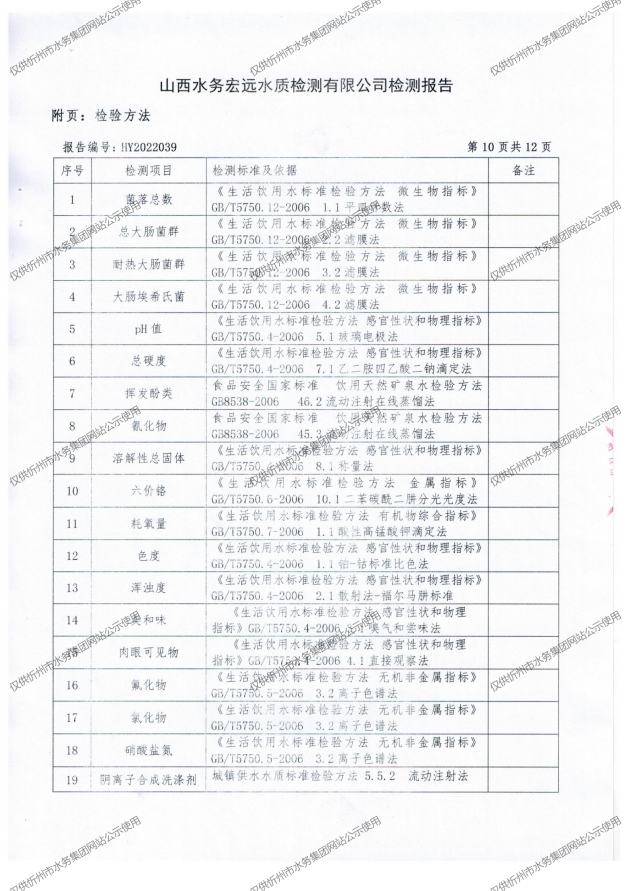 忻州城區(qū)公共供水水源水、出廠水、管網(wǎng)水、管網(wǎng)末梢水2022年5月份水質信息公示